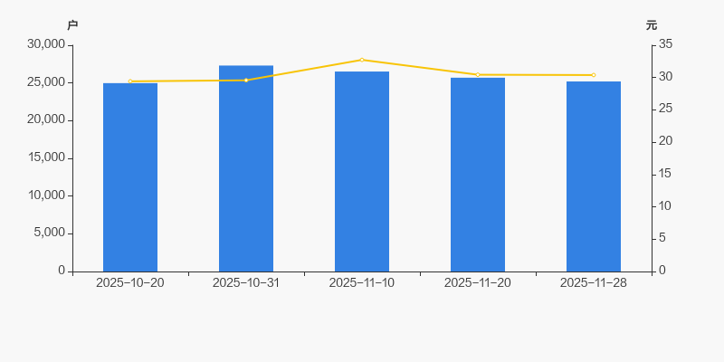 自2025年10月31日以来,公司股东户数连续3期下降,截至目前减幅为7.72%。2025年10月31日至2025年11月28日区间股价上涨2.74%。