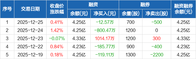 中新赛克:融资净偿还12.57万元,融资余额4.25亿元(12-25)