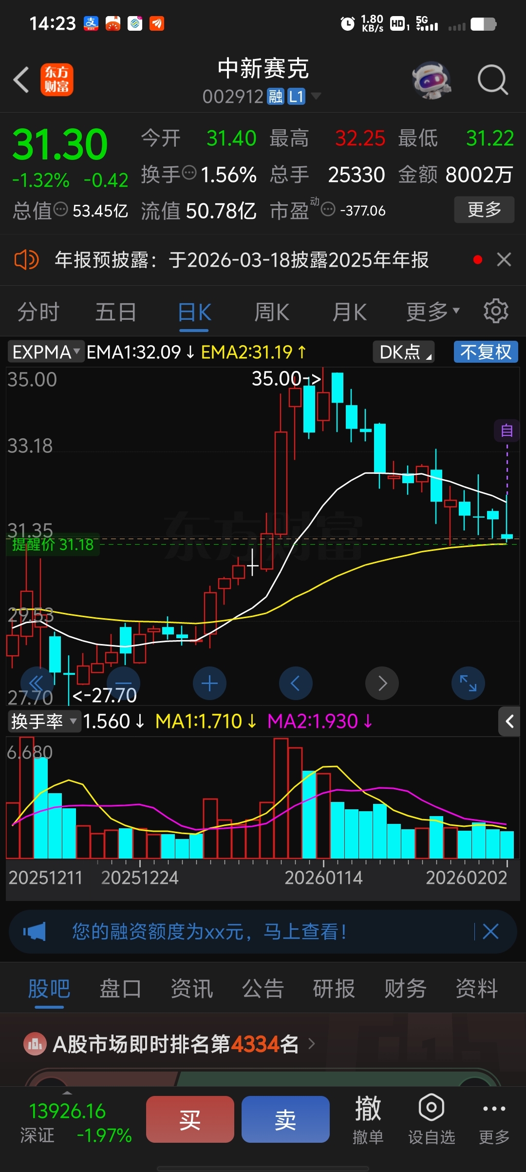 $中新赛克(SZ002912)$ 虽然我没买,但是今日的这个点我已经在上个星期就已经研究出来,今天是跌不破的。如果破了,那就不好意思了。要坏如果说这个星期都在这个点子上,那么好抄底。