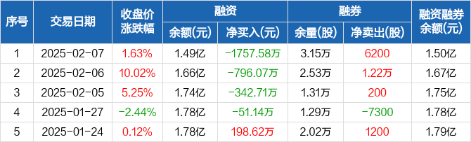 奥士康:融资净偿还1757.58万元,创历史新高(02-07)