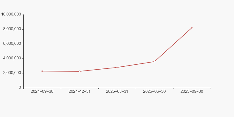 截至2025年9月30日,公司最新总股本为3.17亿股,其中流通股本为3.02亿股。户均持有流通股数量由上期的1.83万股上升至2.09万股,户均流通市值84.51万元。
