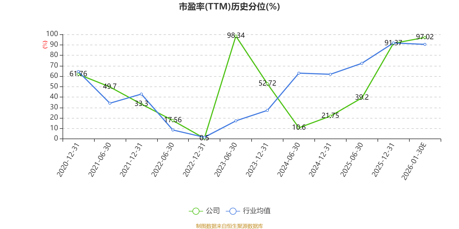 市盈率、市净率为负时,不显示当期分位数,会导致折线图中断。