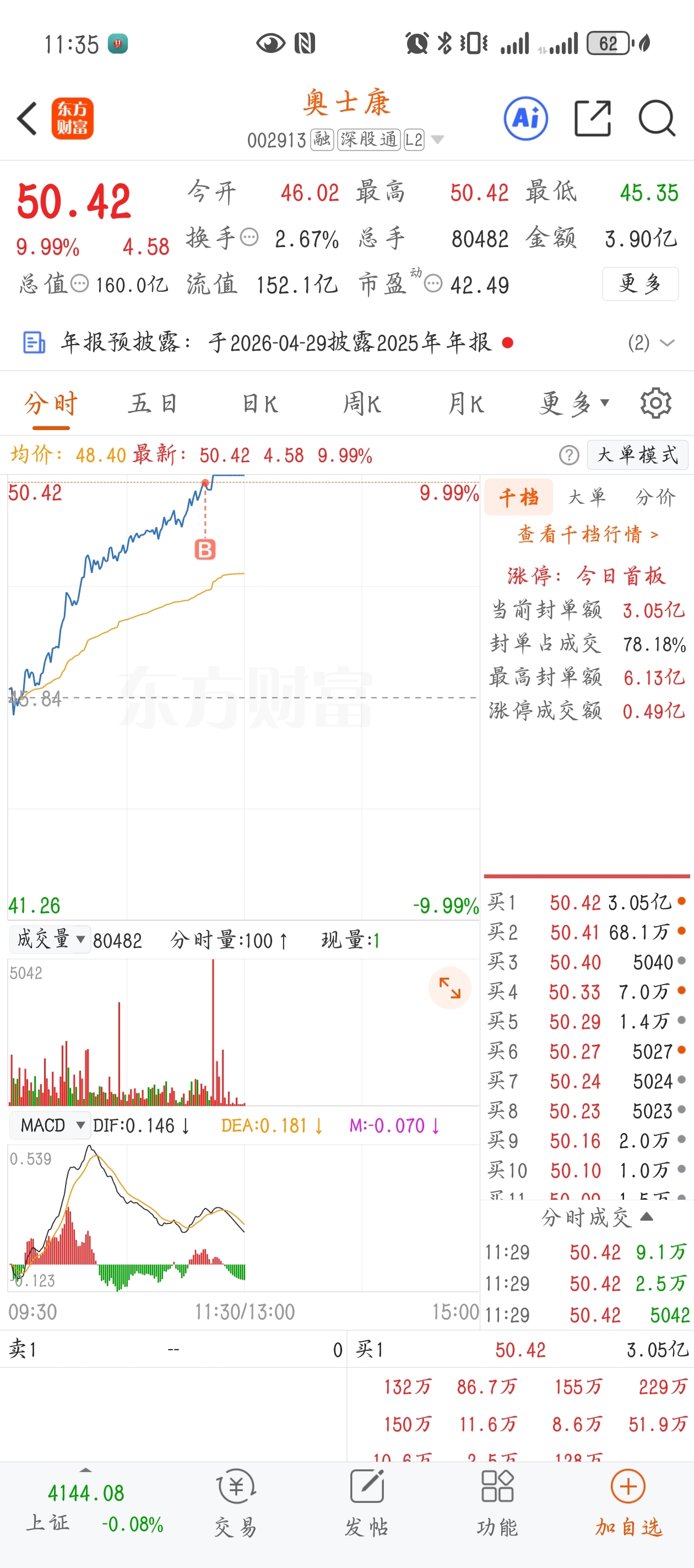 $奥士康(SZ002913)$ 打板进,希望明天不要埋我,吃个溢价就走