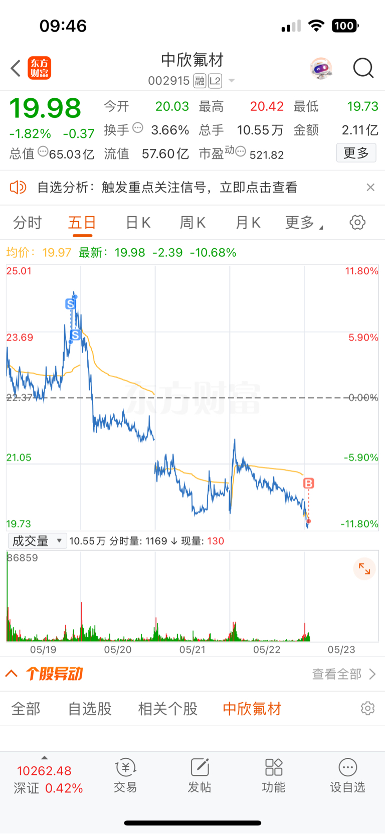 $中欣氟材(SZ002915)$ 昨天发套,今天真不好进来,还是冲动了啊