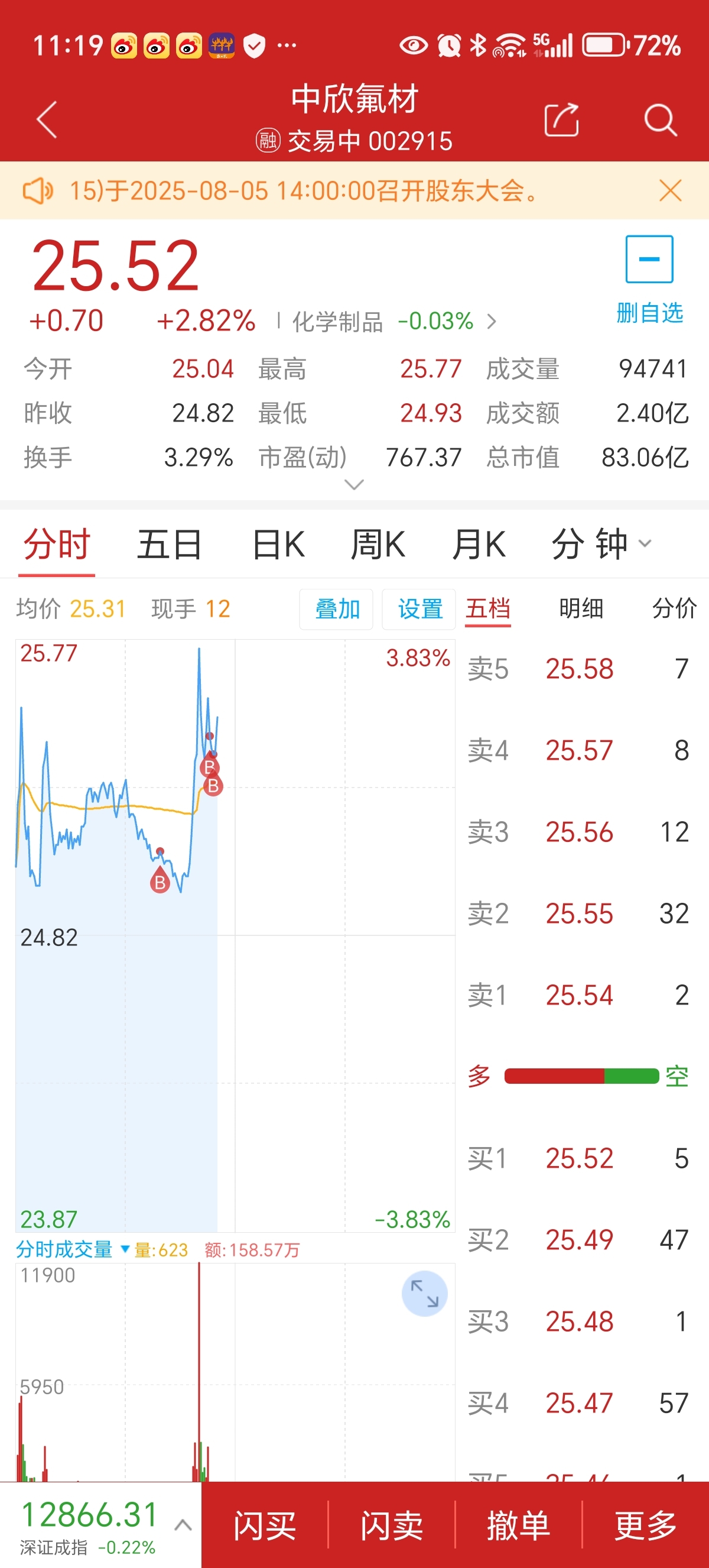 $中欣氟材(SZ002915)$ 全面加仓
