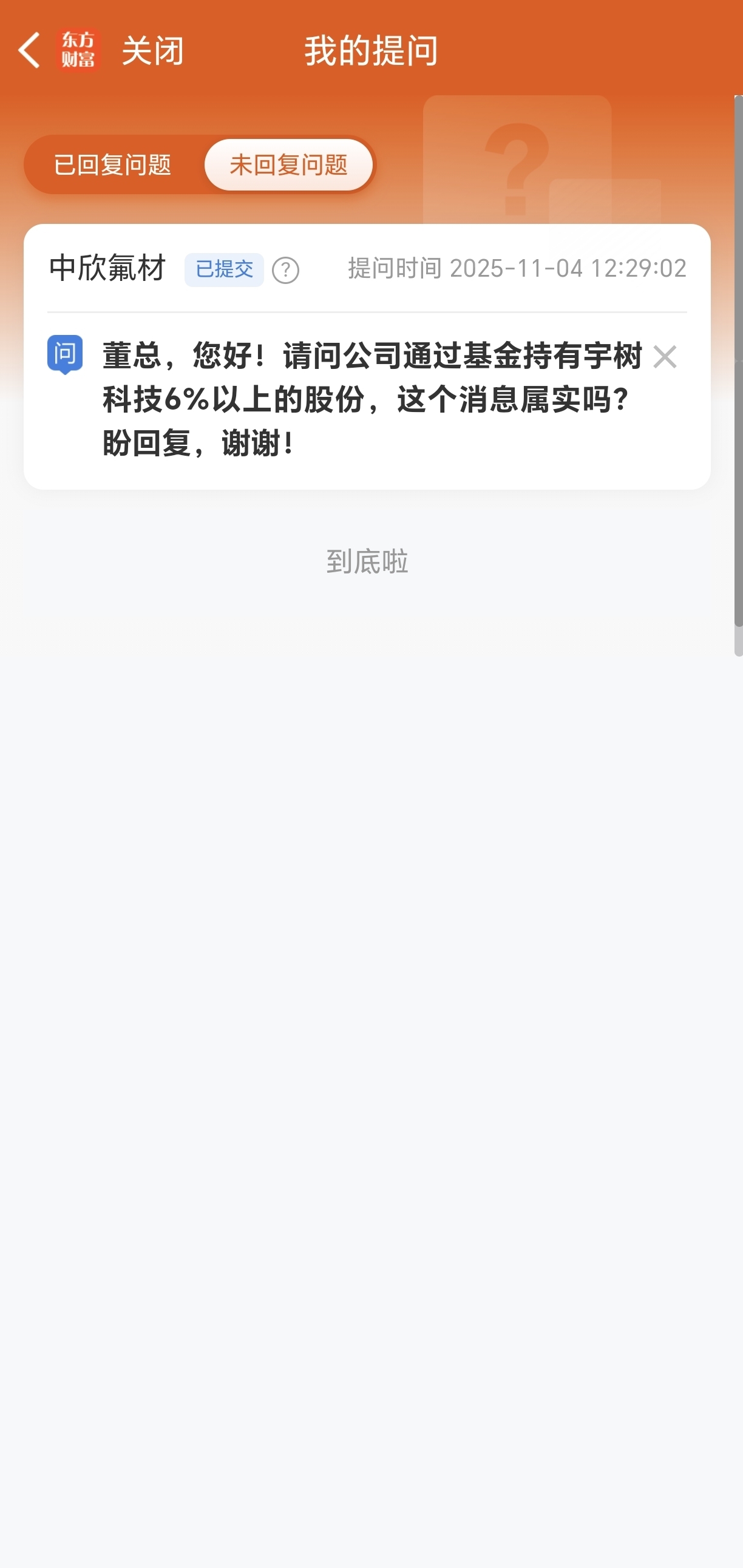 $中欣氟材(SZ002915)$ 是否间接持股宇树的提问为什么不回复我?