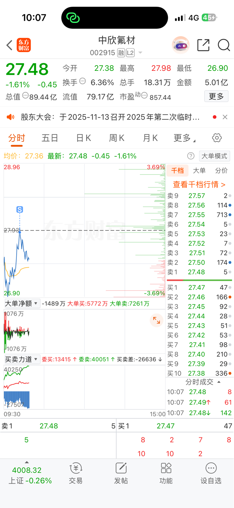 $中欣氟材(SZ002915)$ 25买的,昨天封盘28没出去,今天只能27.9扔了