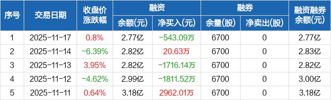 中欣氟材:融资净偿还543.09万元,融资余额2.77亿元(11-17)