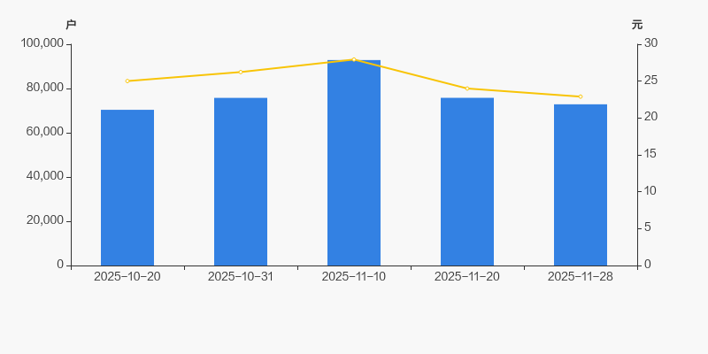 2025年10月20日至今,公司股东户数有所增长,区间涨幅为3.53%。2025年10月20日至2025年11月28日区间股价下降8.44%。