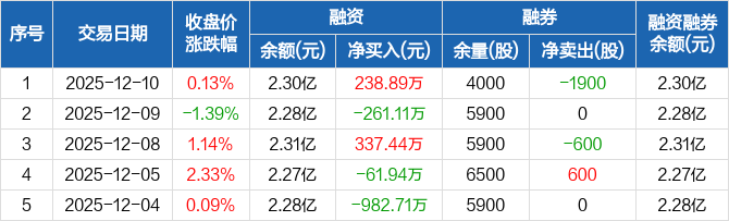 中欣氟材:融资净买入238.89万元,融资余额2.3亿元(12-10)