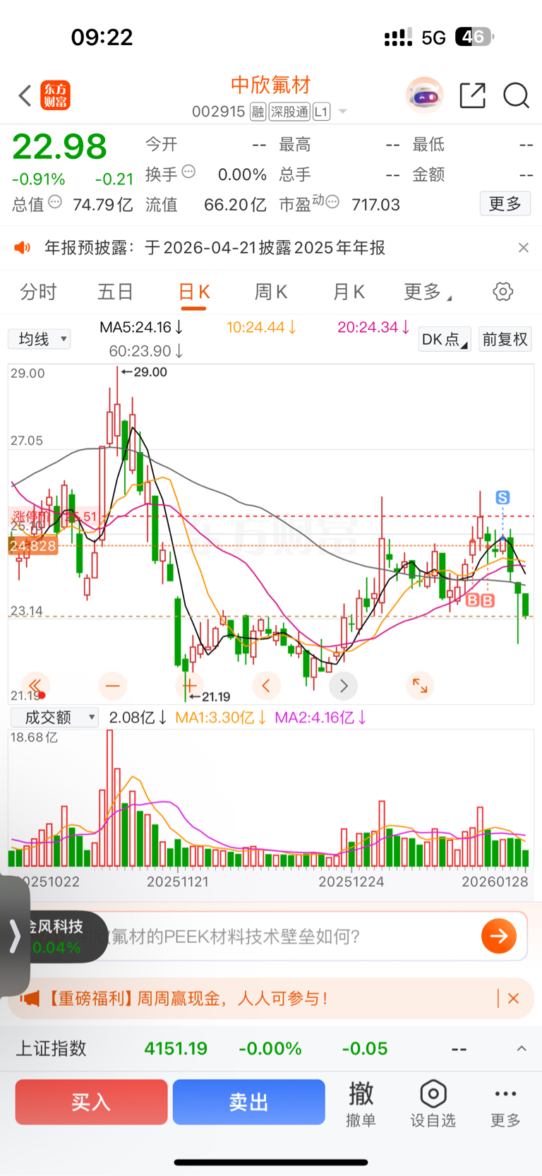 $中欣氟材(SZ002915)$ 怎么天天跌啊