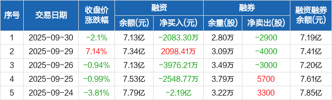 深南电路:融资净偿还2083.3万元,融资余额7.13亿元(09-30)