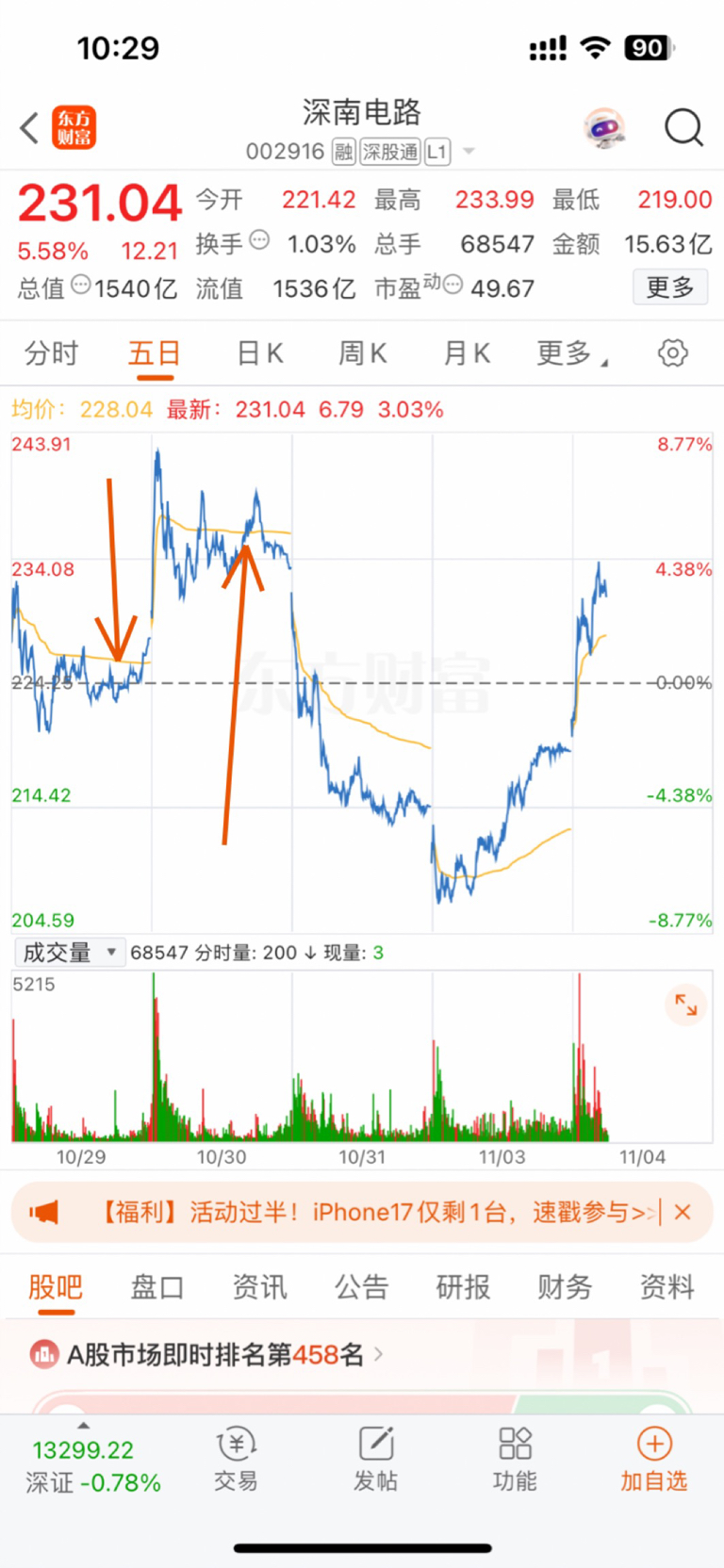 $深南电路(SZ002916)$ 226-236,均线之间是震荡区