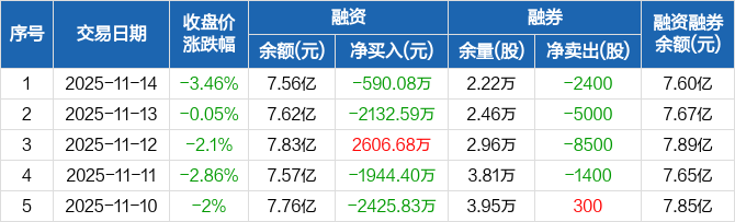 深南电路:融资净偿还590.08万元,融资余额7.56亿元(11-14)