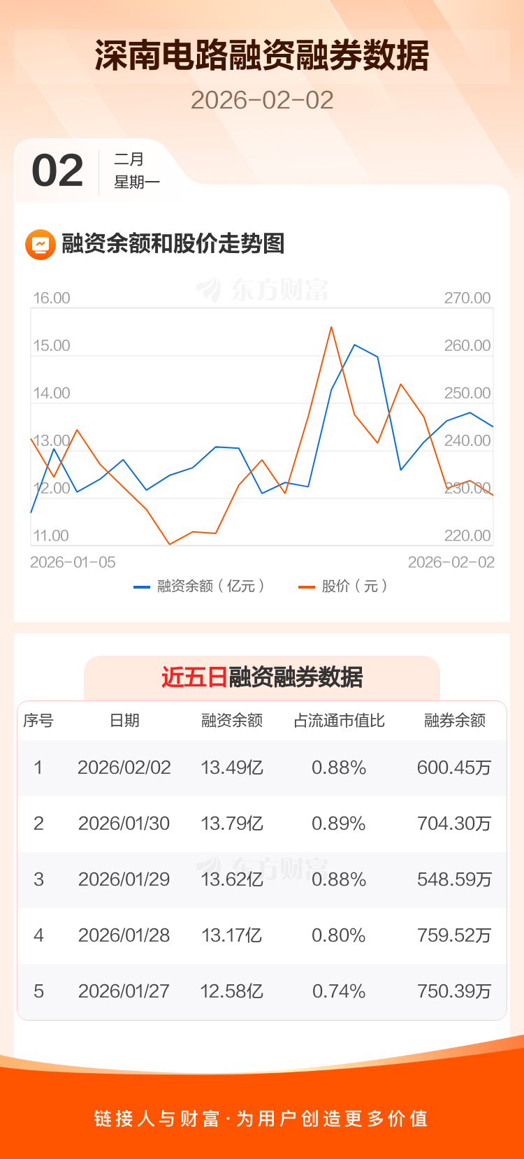 交易所最新数据显示,深南电路于2026年2月2日获融资买入7885.79万元,融资偿还1.08亿元,当日融资净偿还2947.68万元。目前,该股融资余额13.49亿,占流通市值比例为0.88%。