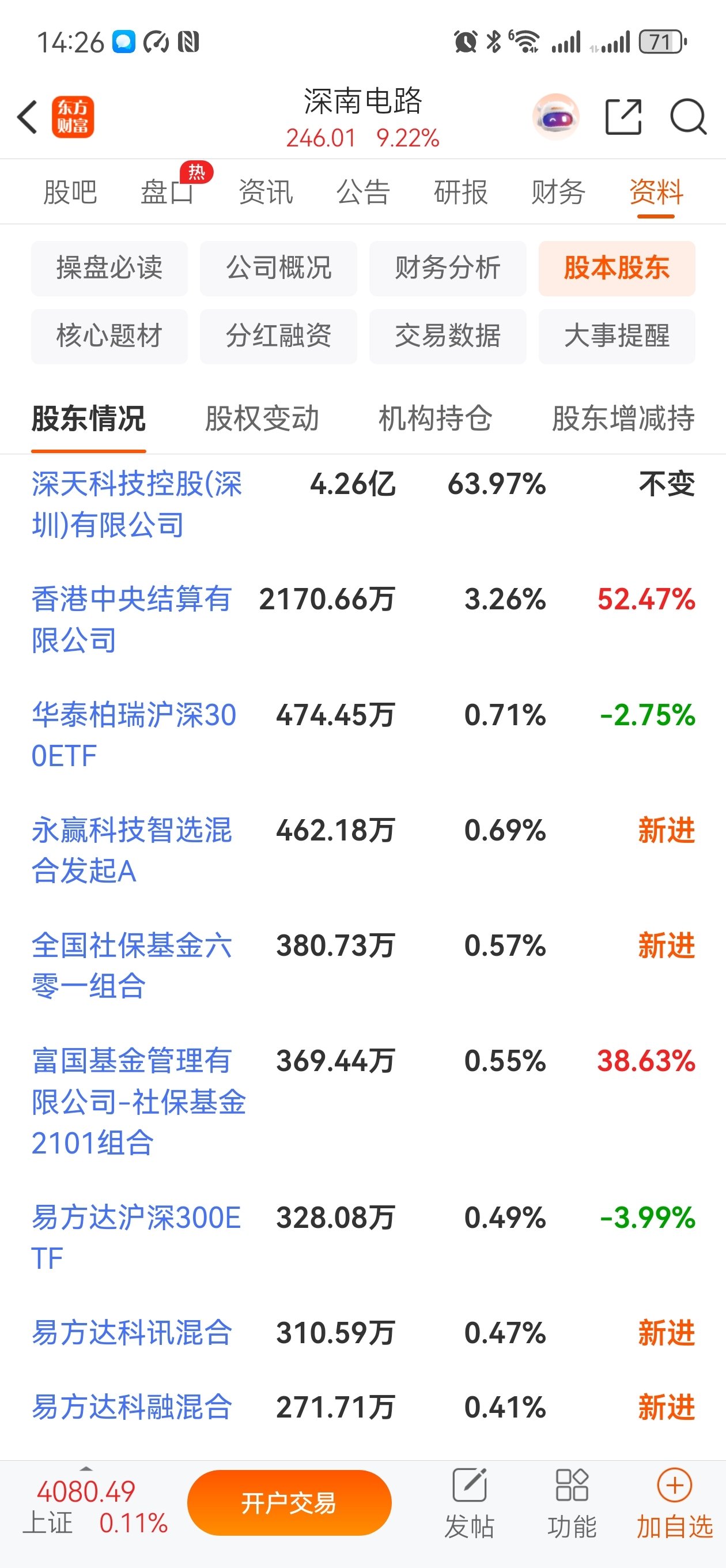 $深南电路(SZ002916)$ 十大股东持股比例高,高度集中控盘,散户少,短线涨幅高会有回调,主力严重控盘,看主力心情,出货周期至少一两年,反复拉升出货!