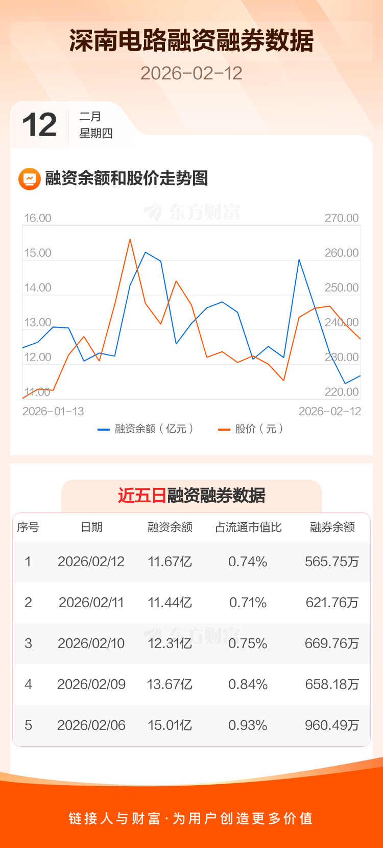 交易所最新数据显示,深南电路于2026年2月12日获融资买入1.52亿元,融资偿还1.29亿元,当日融资净买入2329.66万元。目前,该股融资余额11.67亿,占流通市值比例为0.74%。