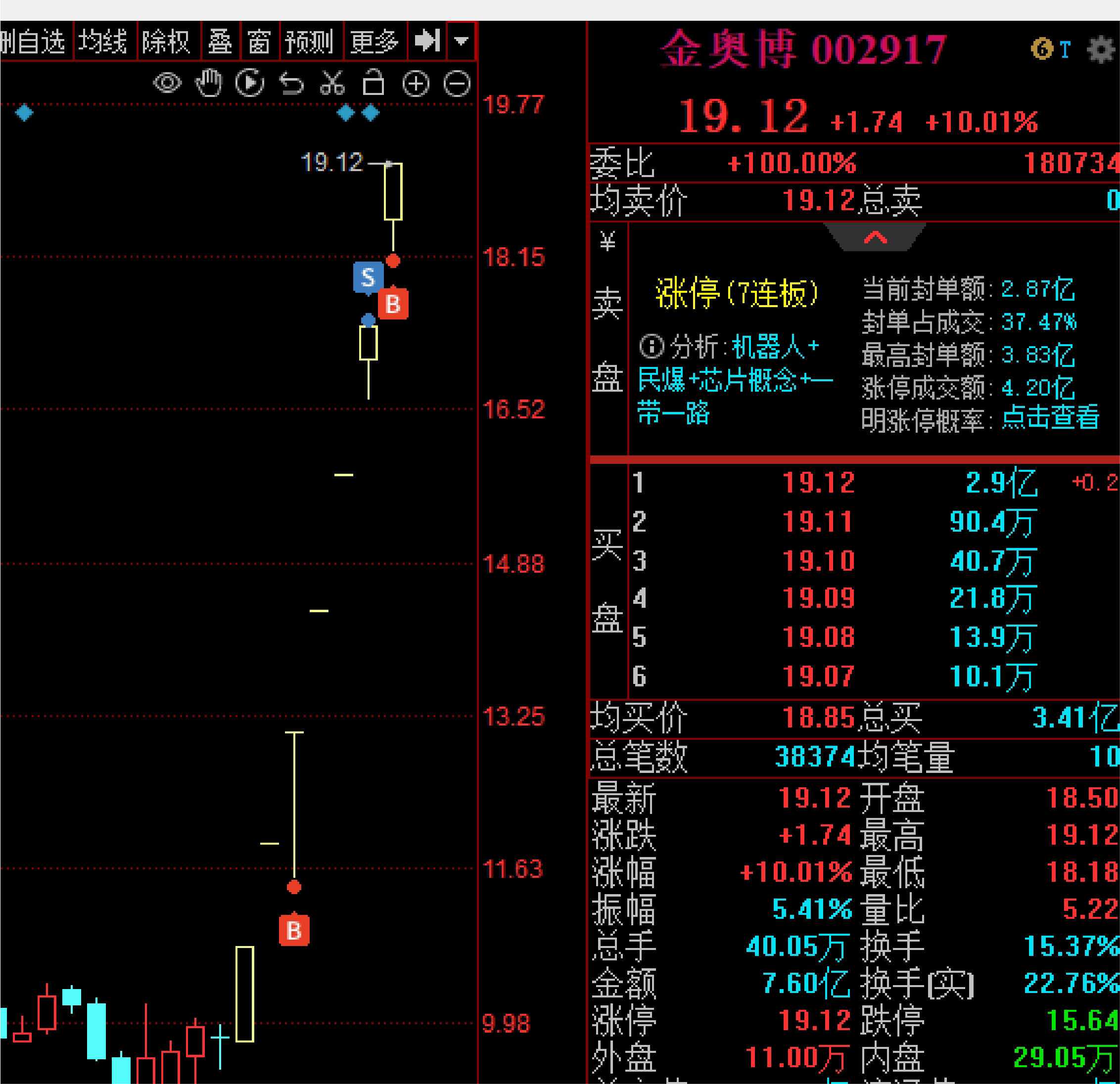 金奥博:竞价强度一般,这也是竞价尾声苏豪弘业资金主动卡位的主要原因,尽管仍然晋级,但是盘中也是多次分歧炸板,今日放了巨量明日关注能否竞价弱转强证明自己,竞价不及预期意味着行情结束;