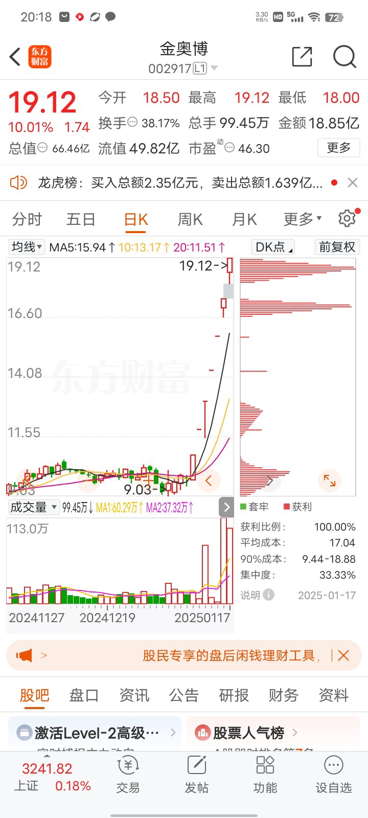 $金奥博(SZ002917)$ 开6点44最低到4点44探到18元15目前最高板7板
