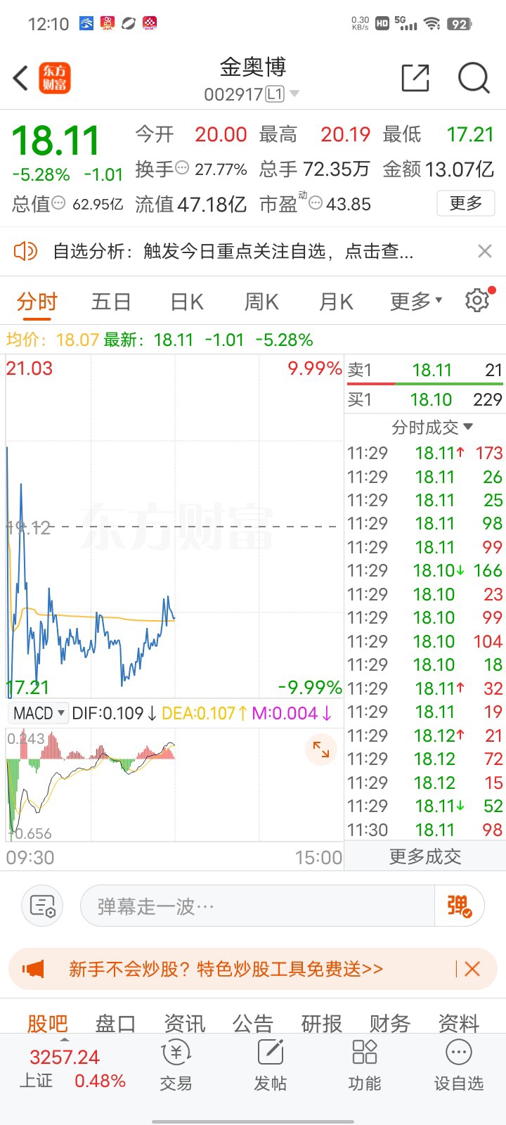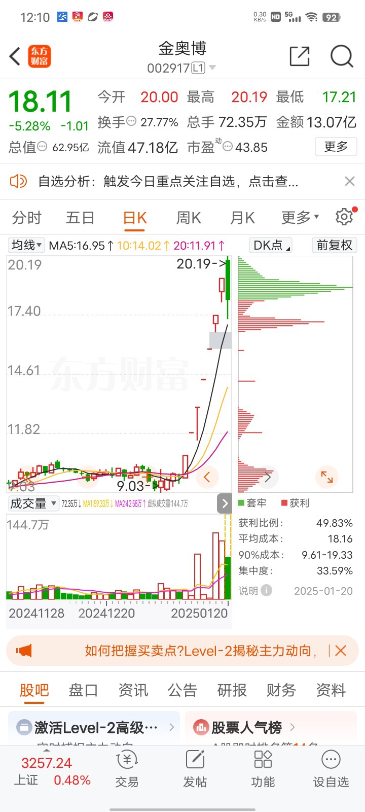 $金奥博(SZ002917)$ 今天能涨停吗?