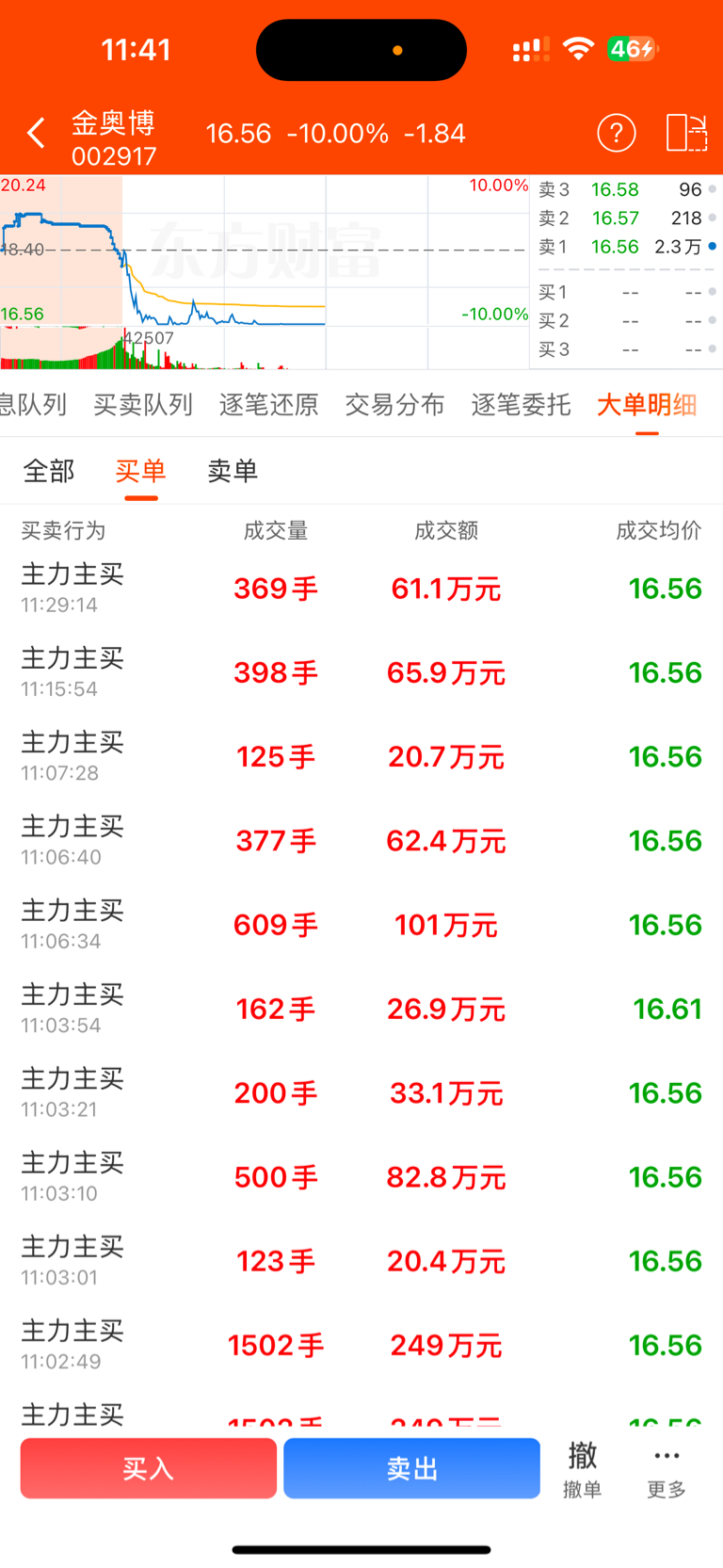 $金奥博(SZ002917)$ 百手哥都是主力在买