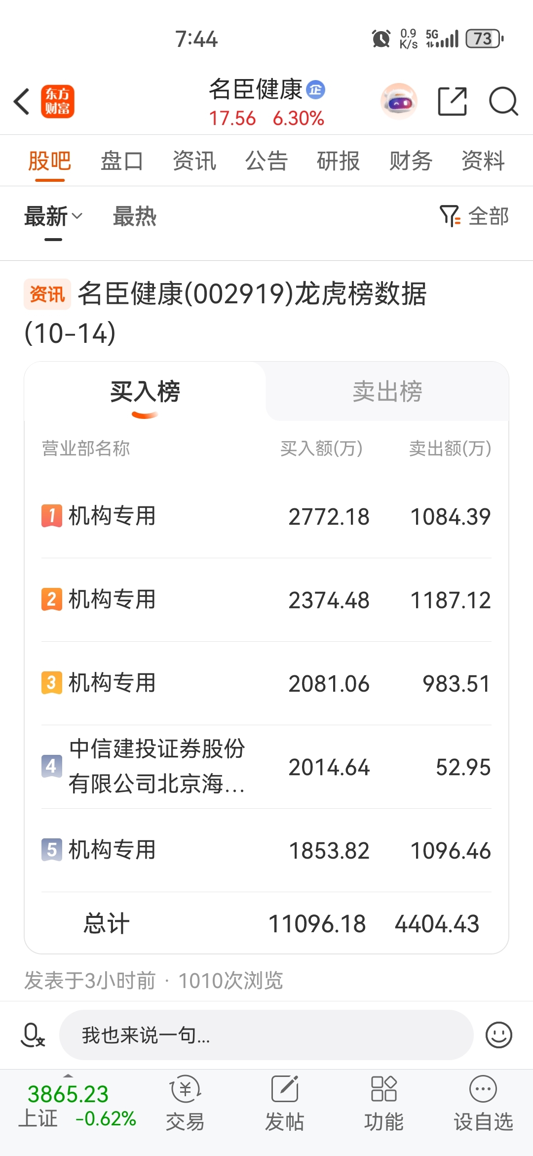 温馨提示: 1.根据《证券法》规定,禁止编造、传播虚假信息或者误导性信息,扰乱证券市场;2.用户在本社区发表的所有资料、言论等仅代表个人观点,与本网站立场无关,不对您构成任何投资建议。用户应基于自己的独立判断,自行决定证券投资并承担相应风险。《东方财富社区管理规定》