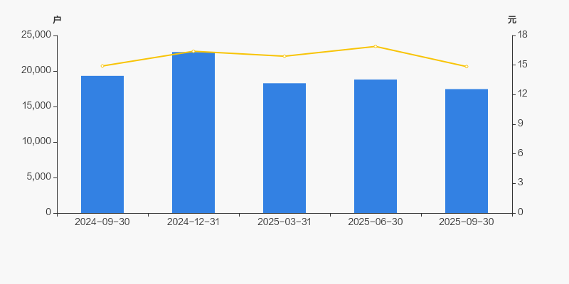 截至2025年9月30日,公司最新总股本为2.67亿股,其中流通股本为2.64亿股。户均持有流通股数量由上期的1.41万股上升至1.51万股,户均流通市值22.5万元。