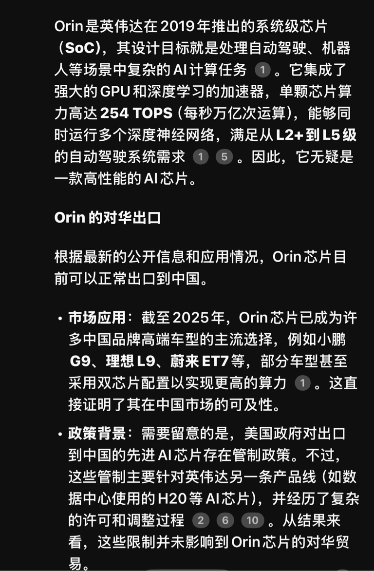 自动驾驶芯片Orin等(非受管制领域的业务)中国市场.仍在正常开展…… 德赛西威
