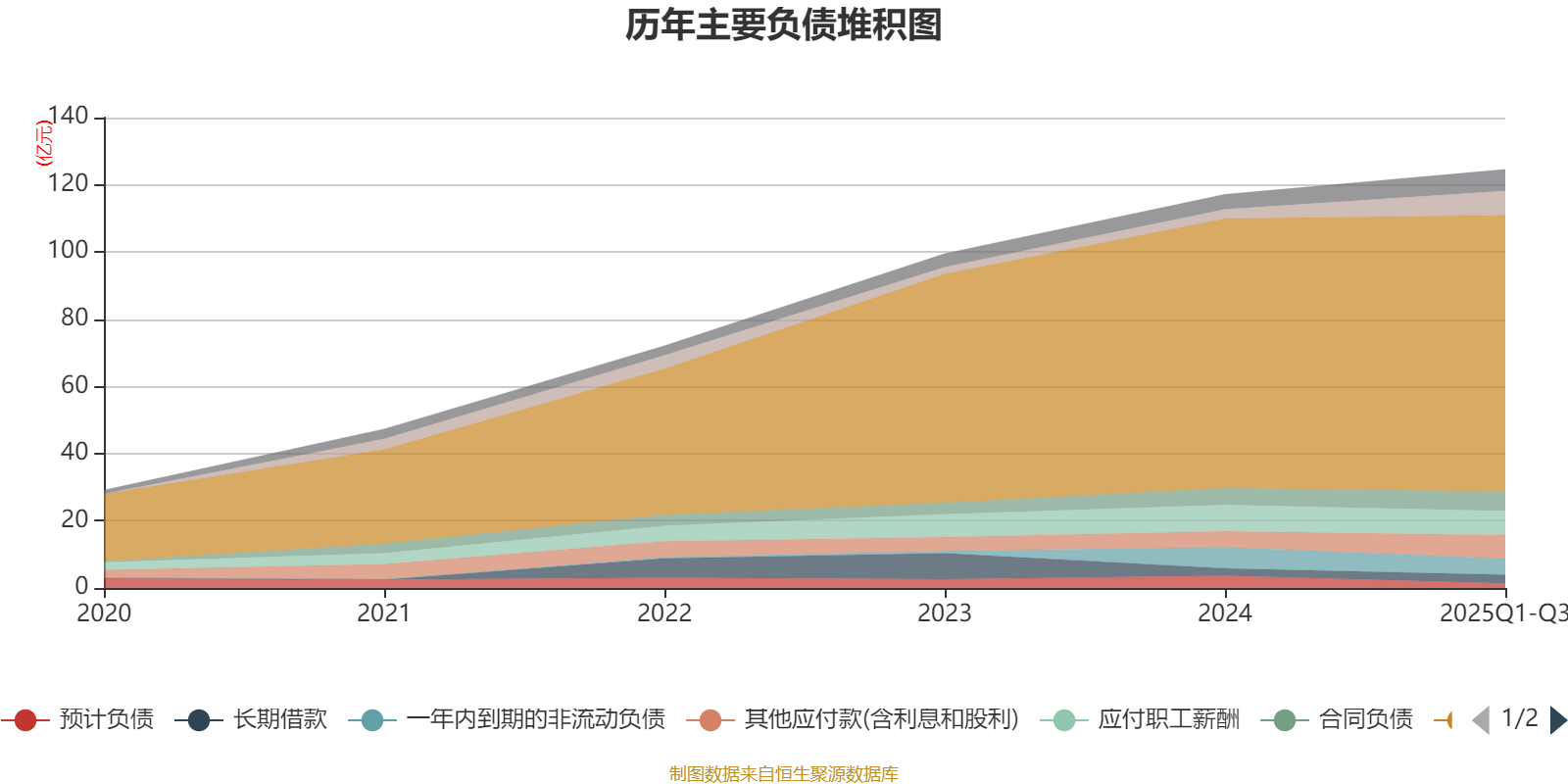 负债重大变化方面,截至2025年三季度末,公司应付票据及应付账款较上年末增加2.54%,占公司总资产比重下降7.14个百分点;短期借款较上年末增加158.67%,占公司总资产比重上升1.35个百分点;一年内到期的非流动负债较上年末减少23.93%,占公司总资产比重下降1.19个百分点;预计负债较上年末减少60.92%,占公司总资产比重下降1.17个百分点。