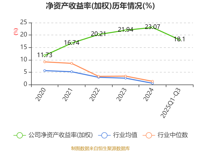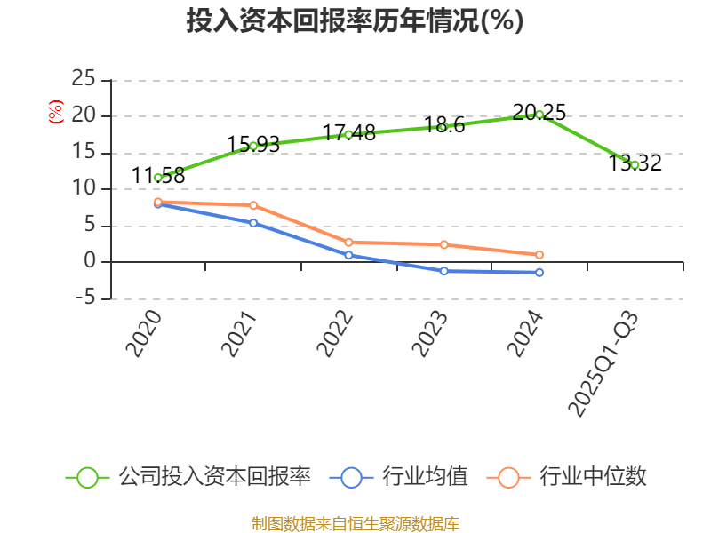 盈利能力方面, 2025年前三季度公司加权平均净资产收益率为18.1%,同比上升1.41个百分点。公司2025年前三季度投入资本回报率为13.32%,较上年同期下降1.39个百分点。