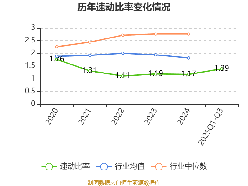 2025年前三季度,公司流动比率为1.82,速动比率为1.39。