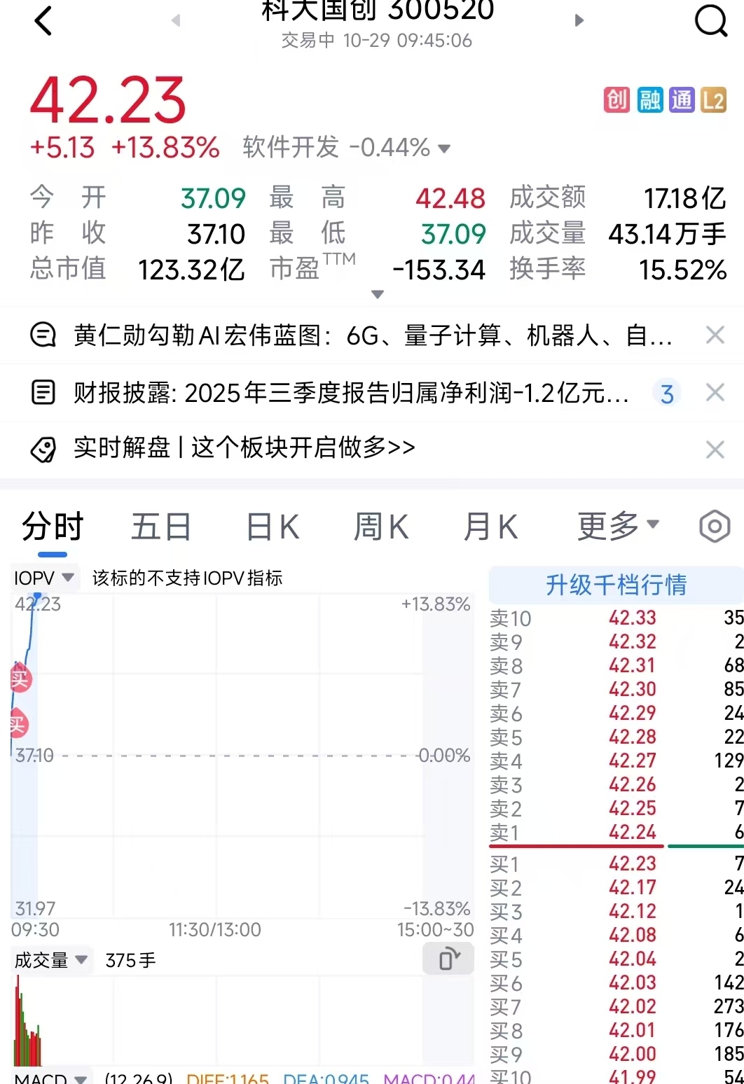 $德赛西威(SZ002920)$ 早上买的这个科大国创怎么样呀?一定要买牛市的趋势核心票呀!