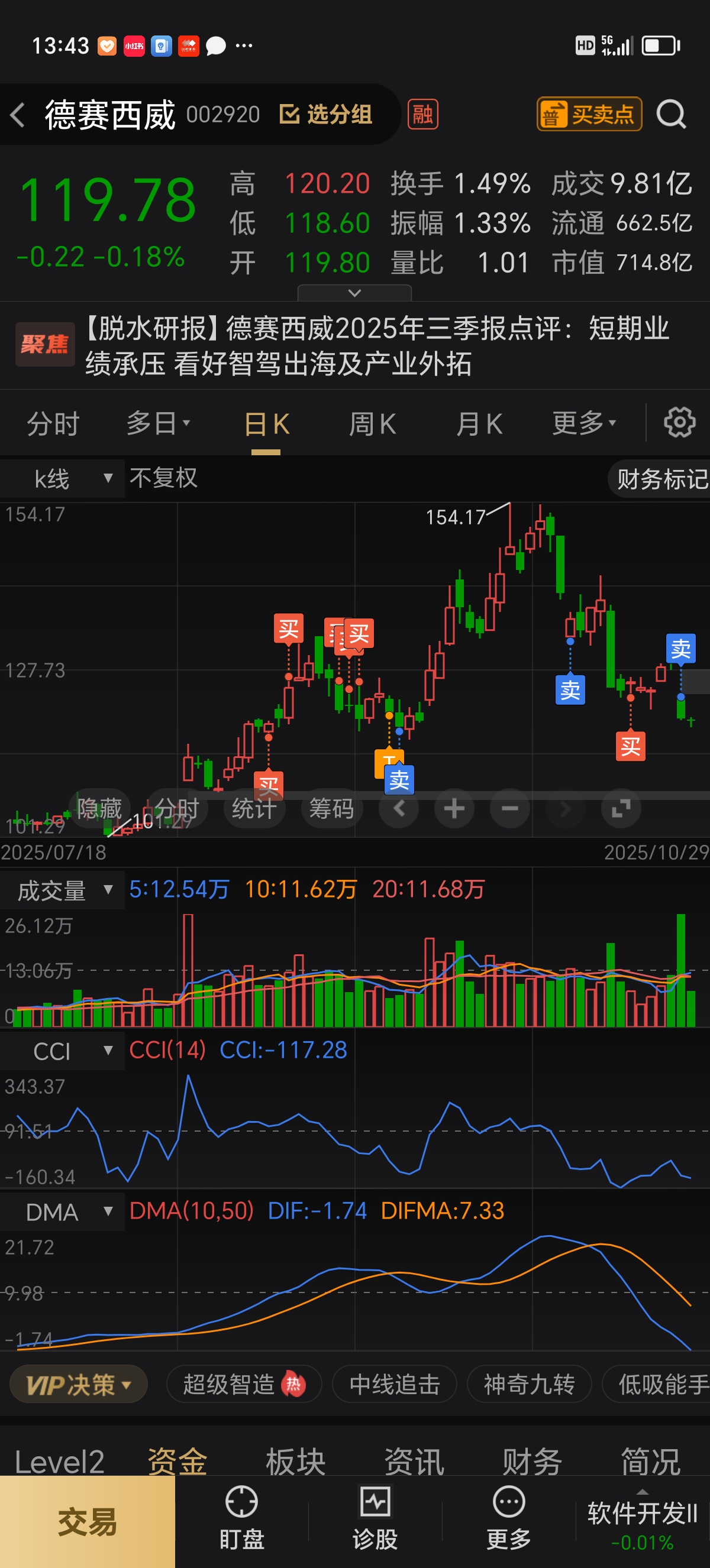 昨天负7个点割了,换了光伏,光伏涨疯了,德赛西威股胜太差,买几次都没赚到钱。