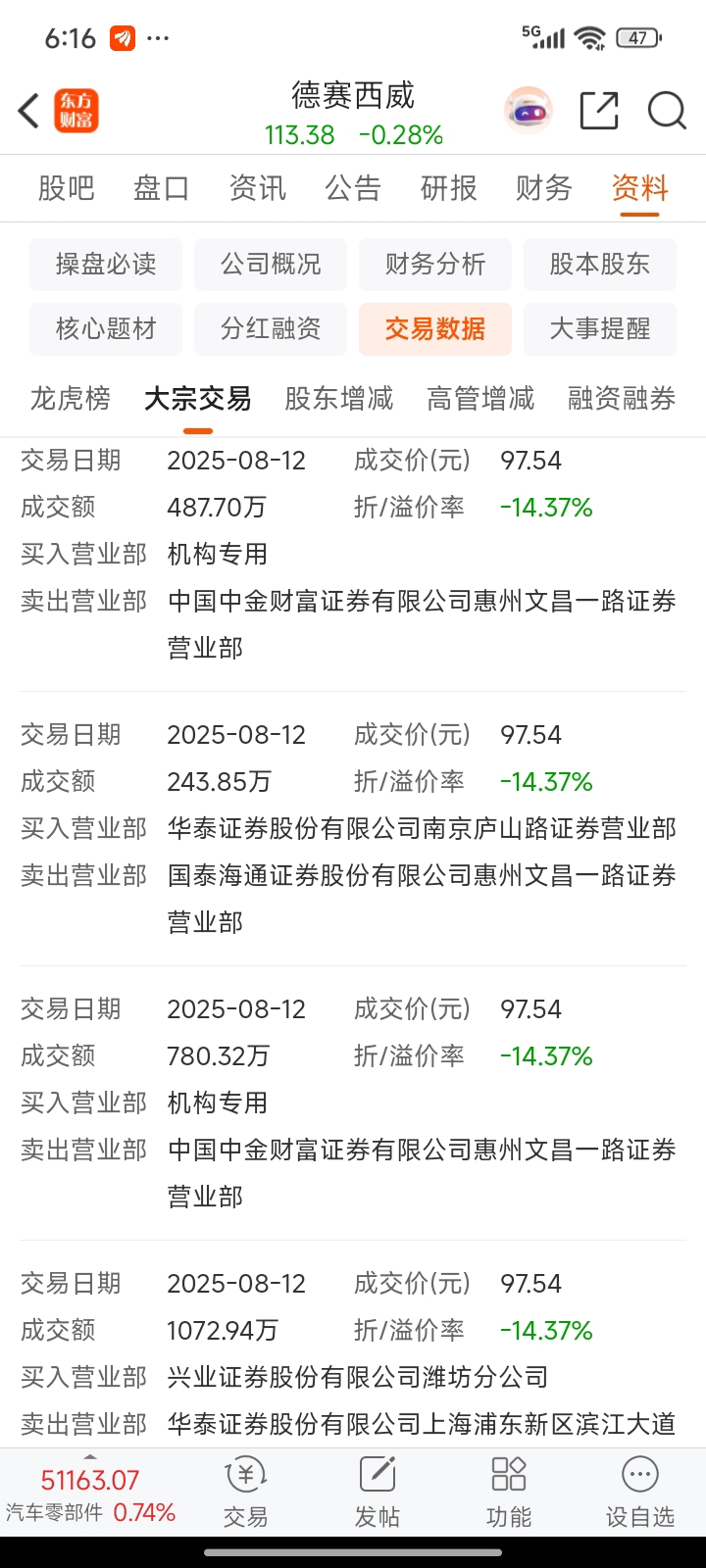 $德赛西威(SZ002920)$ 大宗交易什么时候可以二手市场买卖?