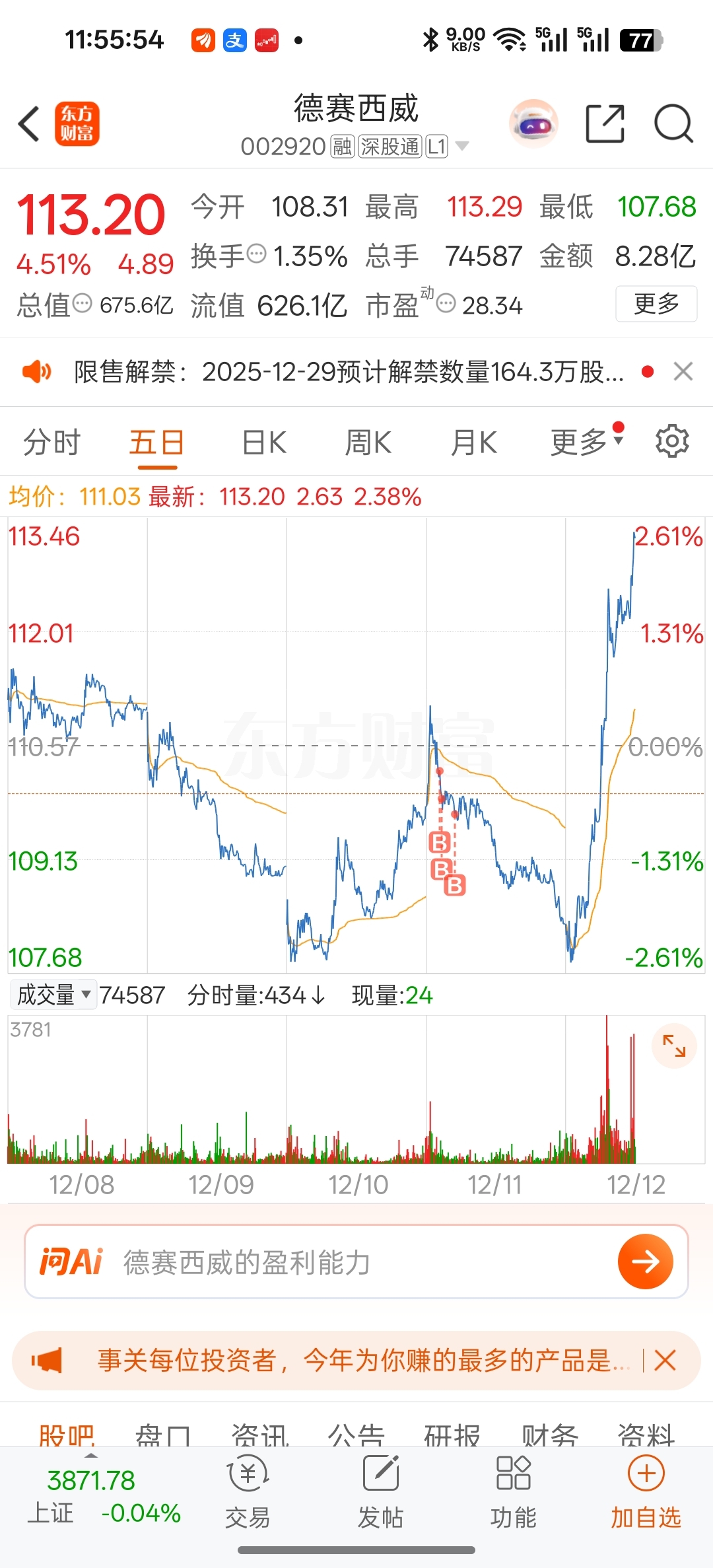 $德赛西威(SZ002920)$ 观察了好久,我看昨天有异动进去了,昨天纯粹是被大盘带下来的,当天埋了2个点,还好今天反包了,今天也放量了,后面坐稳扶好