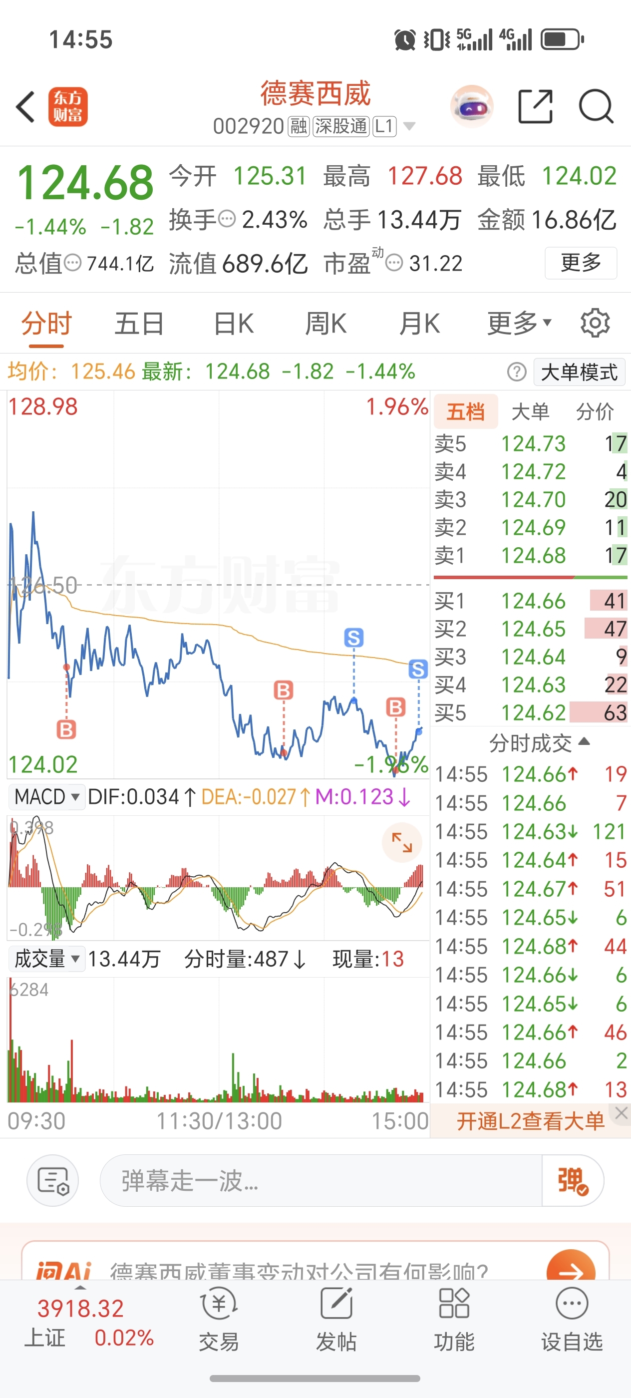 $德赛西威(SZ002920)$ 又是无聊的行情做做T解解闷