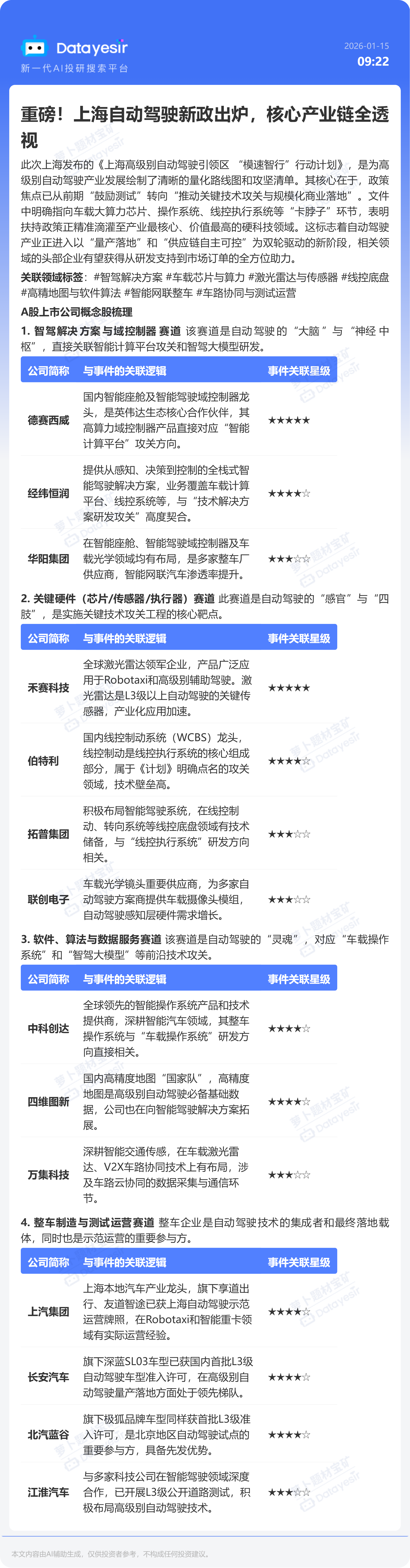 重磅!上海自动驾驶新政出炉,核心产业链全透视