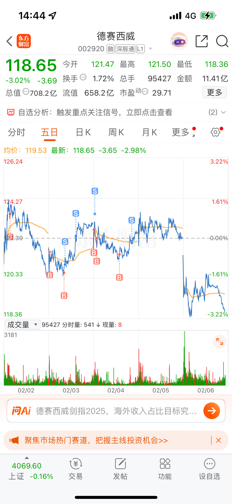 $德赛西威(SZ002920)$ 眼看着回本,又大跌了,一直做T都回不来本,真的是心痛