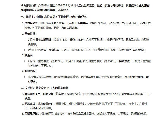 $德赛西威(SZ002920)$ 大家好自为之,豆包炒股不可靠,但是可以参考,结合昨日营造强势现象,骗散户进来抄底,现在货出得差不多了,开始不计后果的砸盘
