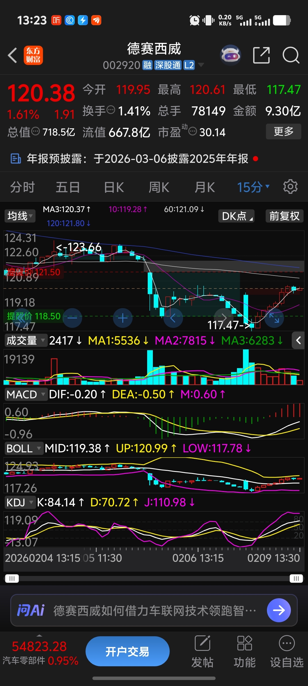 $德赛西威(SZ002920)$ 缺口没没到,希望不大