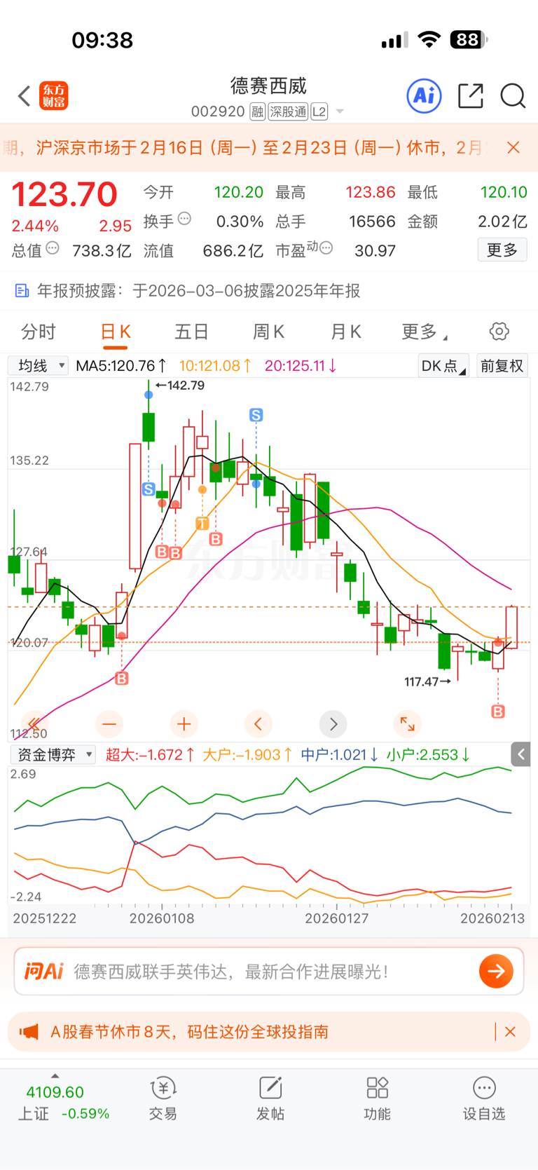 $德赛西威(SZ002920)$ 兄弟们看我历史帖子 这个票目前已经比世运电路和浙江世宝这两个已经涨很多的票有空间 短期看到130 修复一下 因为减持结束了 国产有了喘息时间