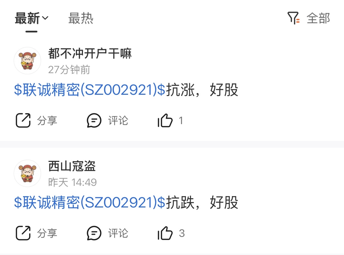 温馨提示: 1.根据《证券法》规定,禁止编造、传播虚假信息或者误导性信息,扰乱证券市场;2.用户在本社区发表的所有资料、言论等仅代表个人观点,与本网站立场无关,不对您构成任何投资建议。用户应基于自己的独立判断,自行决定证券投资并承担相应风险。《东方财富社区管理规定》