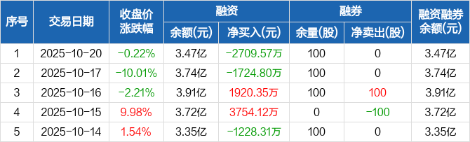 伊戈尔:融资净偿还2709.57万元,融资余额3.47亿元(10-20)