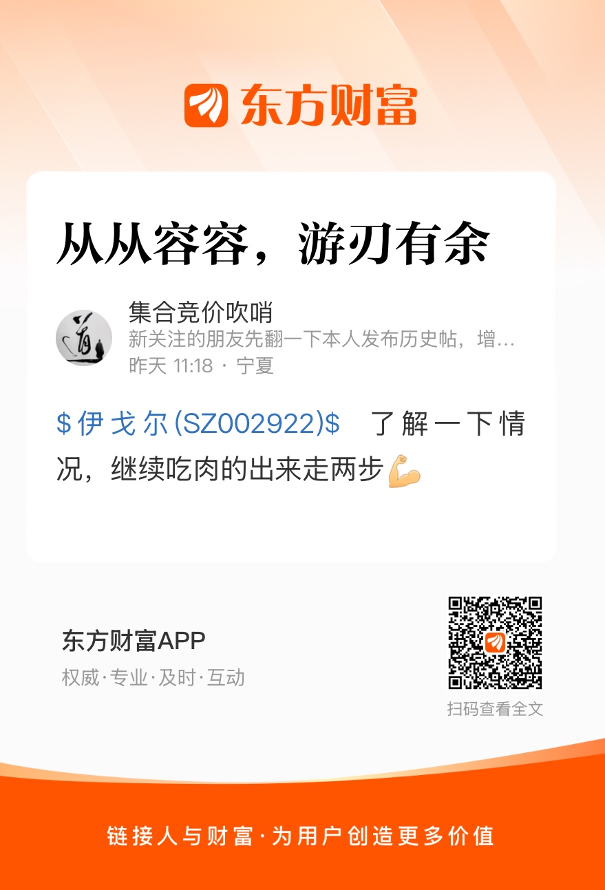 $伊戈尔(SZ002922)$  了解一下情况,继续吃肉的出来走两步