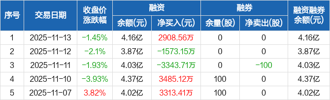 伊戈尔:融资净买入2908.56万元,融资余额4.16亿元(11-13)
