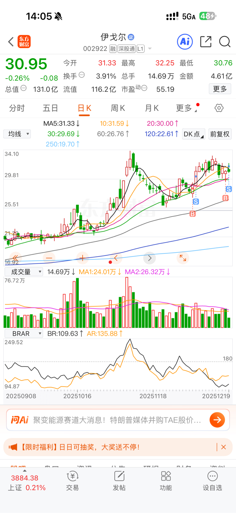 $伊戈尔(SZ002922)$ 这股回落到30日线就到了买点,高开回落就可以考虑卖了