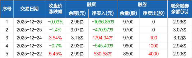 伊戈尔:融资净偿还1066.85万元,融资余额2.96亿元(12-26)