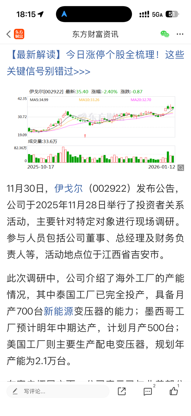 $伊戈尔(SZ002922)$ 翻了11月30号的调研公告,