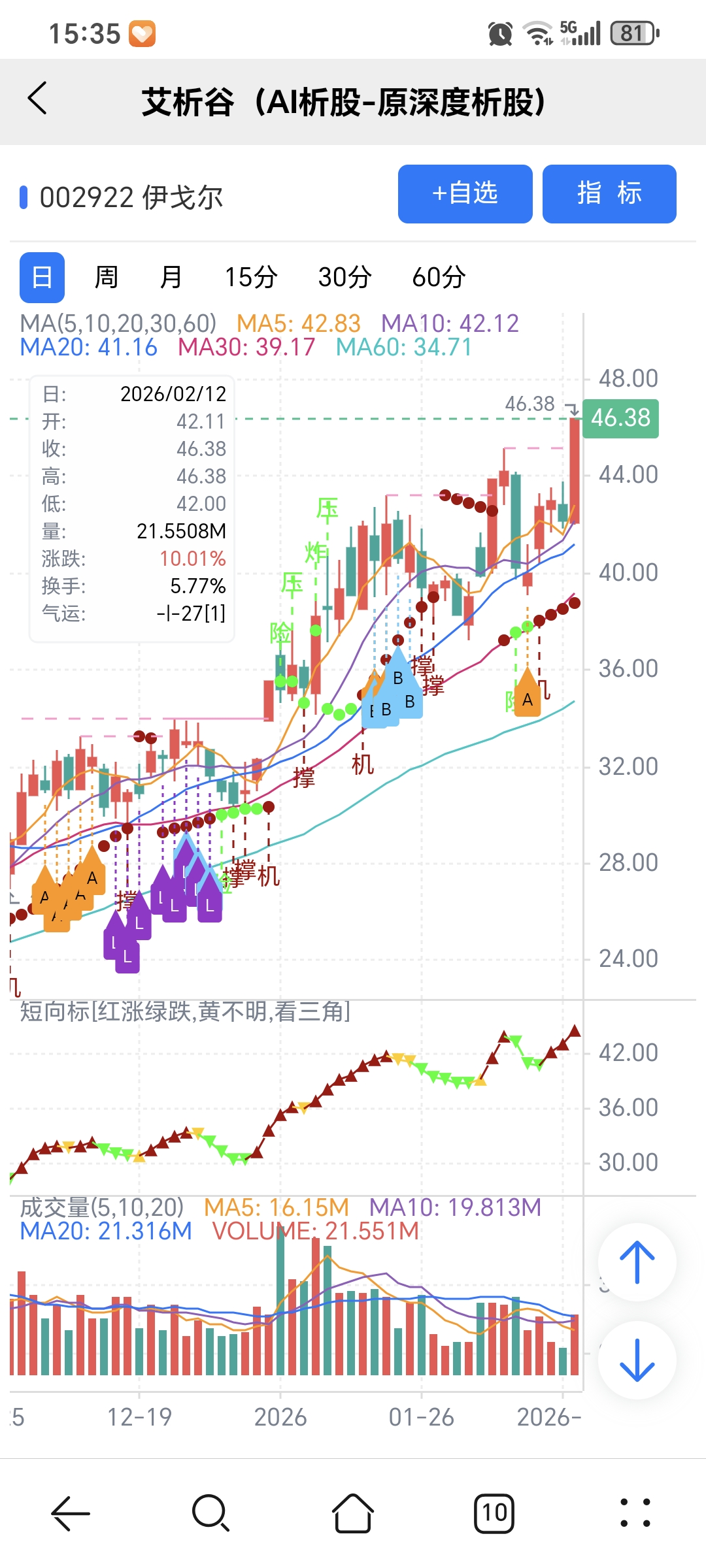 图中A、B、L关注标记是对应AI选股模型当天下午2点多给出。