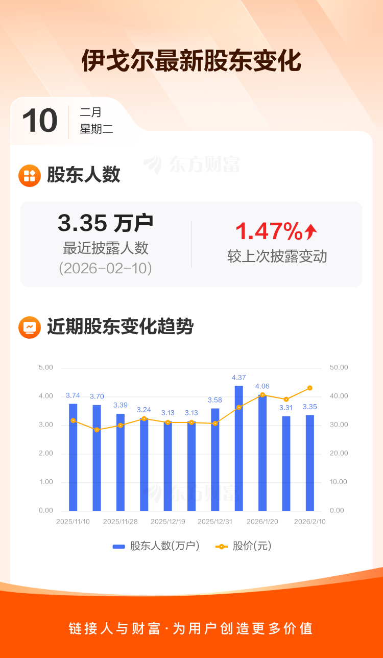 伊戈尔:截至2月10日最新股东户数3.35万户,较上期增加1.47%